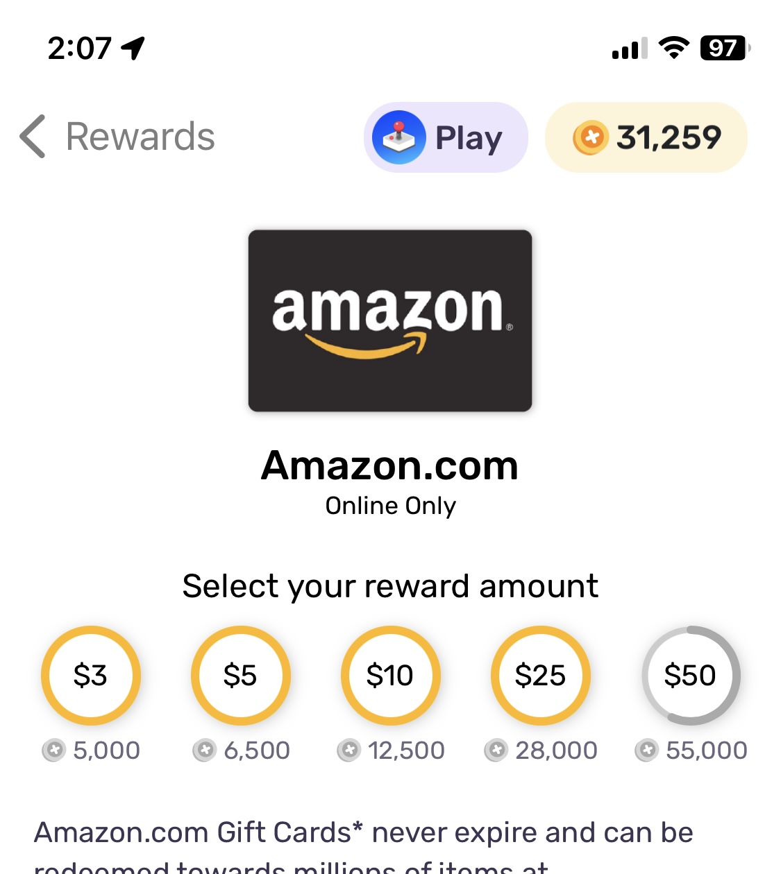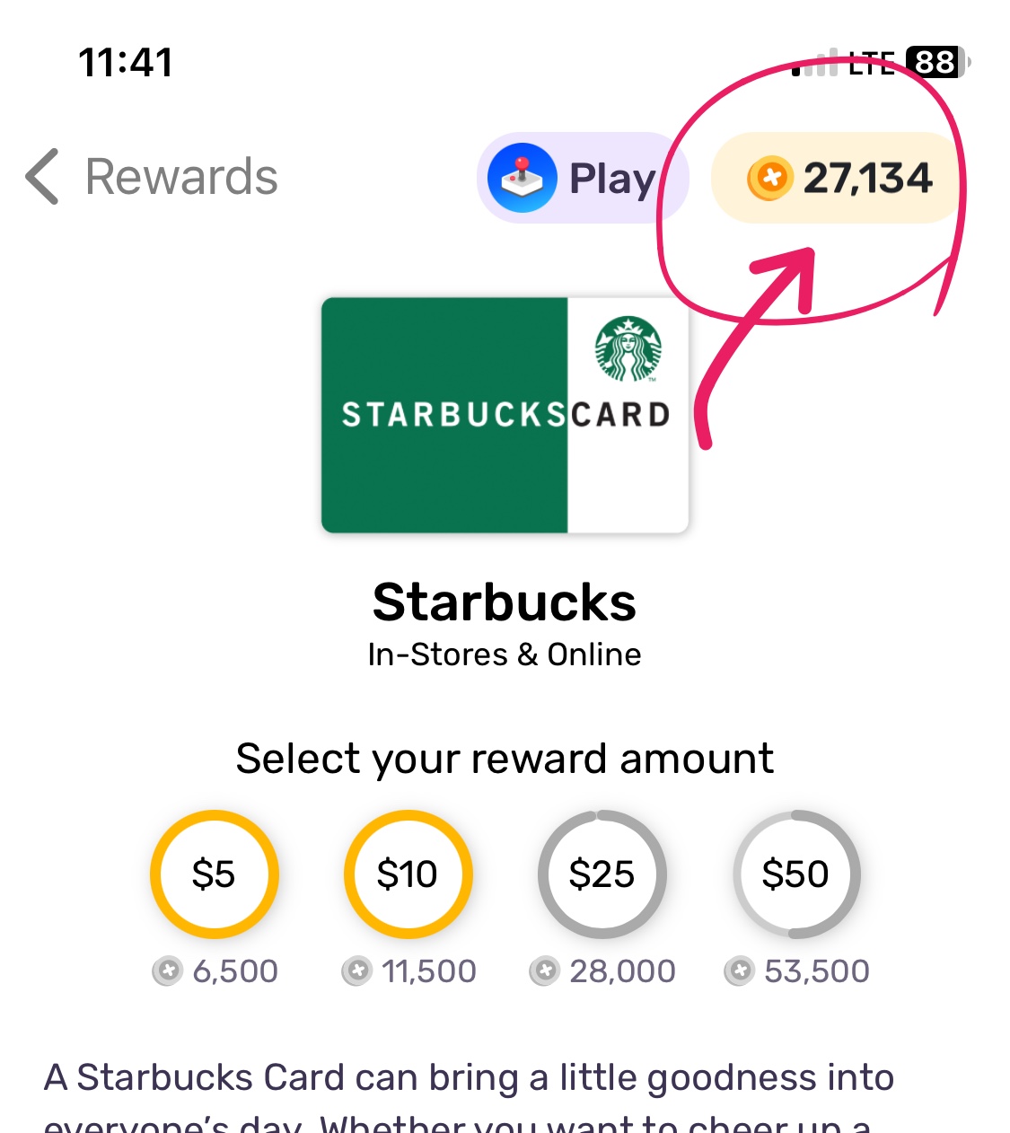 그렇게 포인트를 모아서 사용자가 구매할 수 있는 e 기프트 카드의 종류는 정말 다양합니다! 어쩌면 우리가 알고 있는 모든 브랜드의 기프트카드로 교환할 수 있을 거예요! 유명 레스토랑부터 스타벅스, 아마존 등 내가 원하는 것으로 바꾸어 현금처럼 사용할 수 있습니다.
